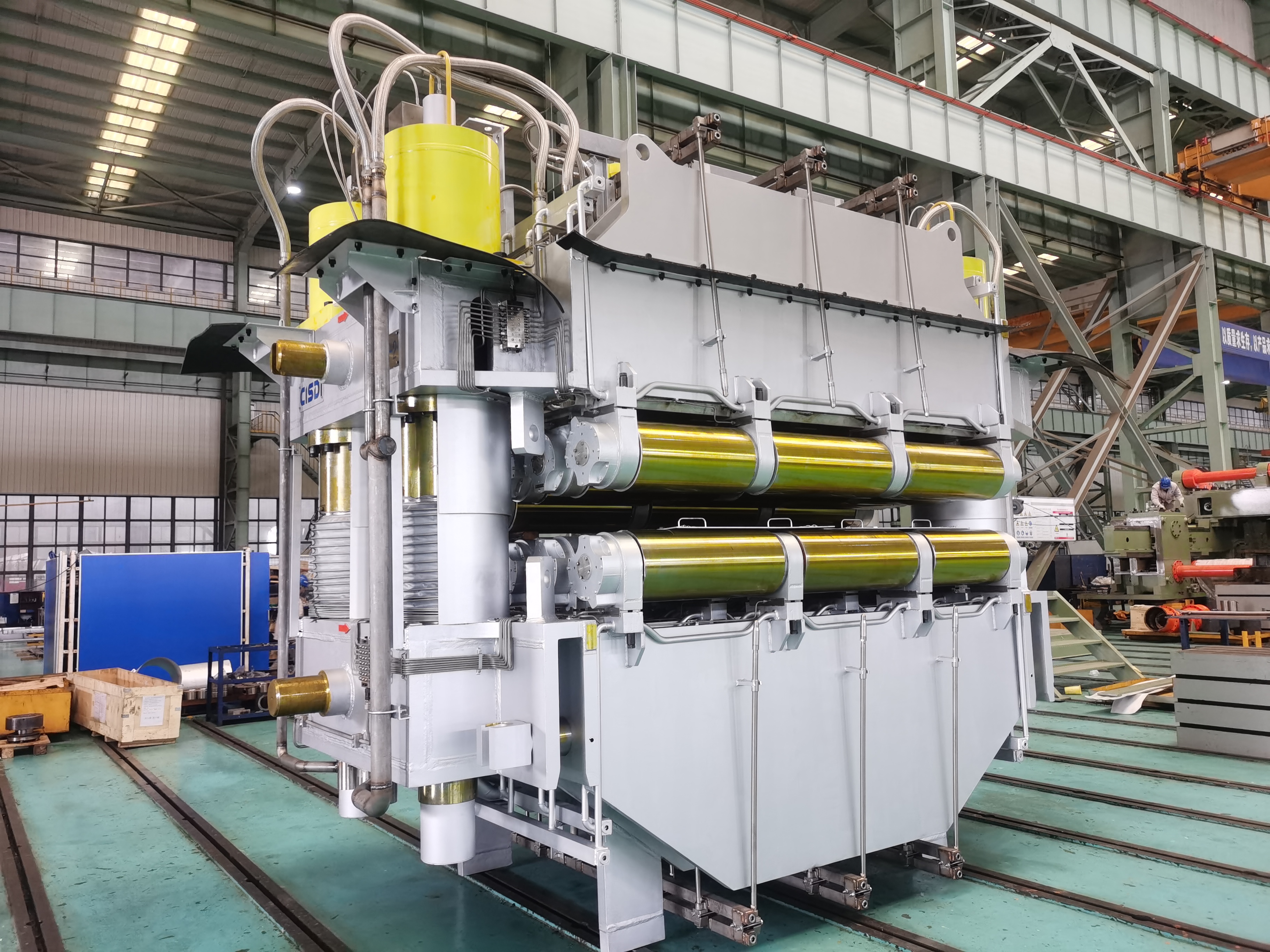 酒鋼煉軋項目扇形段本項目采用中冶賽迪自主研發的結晶器液壓振動裝置和扇形段核心產品,連鑄坯寬1500-2300mm,板厚220-320mm。項目應用“連續彎曲、連續矯直變輥徑輥列”“自動幅切及高效智能反沖洗二冷噴淋”“兩片式高精度結晶器液壓振動”“高輥縫精度扇形段”等先進工藝技術,從而實現綠色高效生產,確保鑄坯質量“中心偏析優于B0.5的比例≥95%”“無≥1.0 級內部裂紋”“鑄坯表面原始合格率≥98%”的目標。同時,集控中心和澆鑄平臺機器人的運用,將大幅度降低勞動強度,提高連鑄機作業率,實現高效、穩定的連續生產,進一步助力酒鋼提升連鑄的生產效率與產品質量。